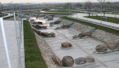 Tras la charla hemos podido visitar las obras. Éste es el estado actual del canal de aguas bravas -por ahora sólo con escasos charcos bien tranquilos-