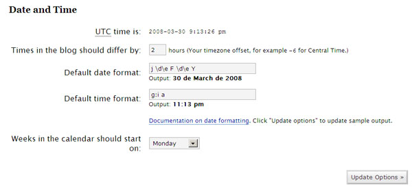Toca actualizar la hora del blog WordPress Pues yo ni cuenta, pero se lo he leído a José Luis Orihuela. Así que, ya sabeis… WP: General, Options / Update
